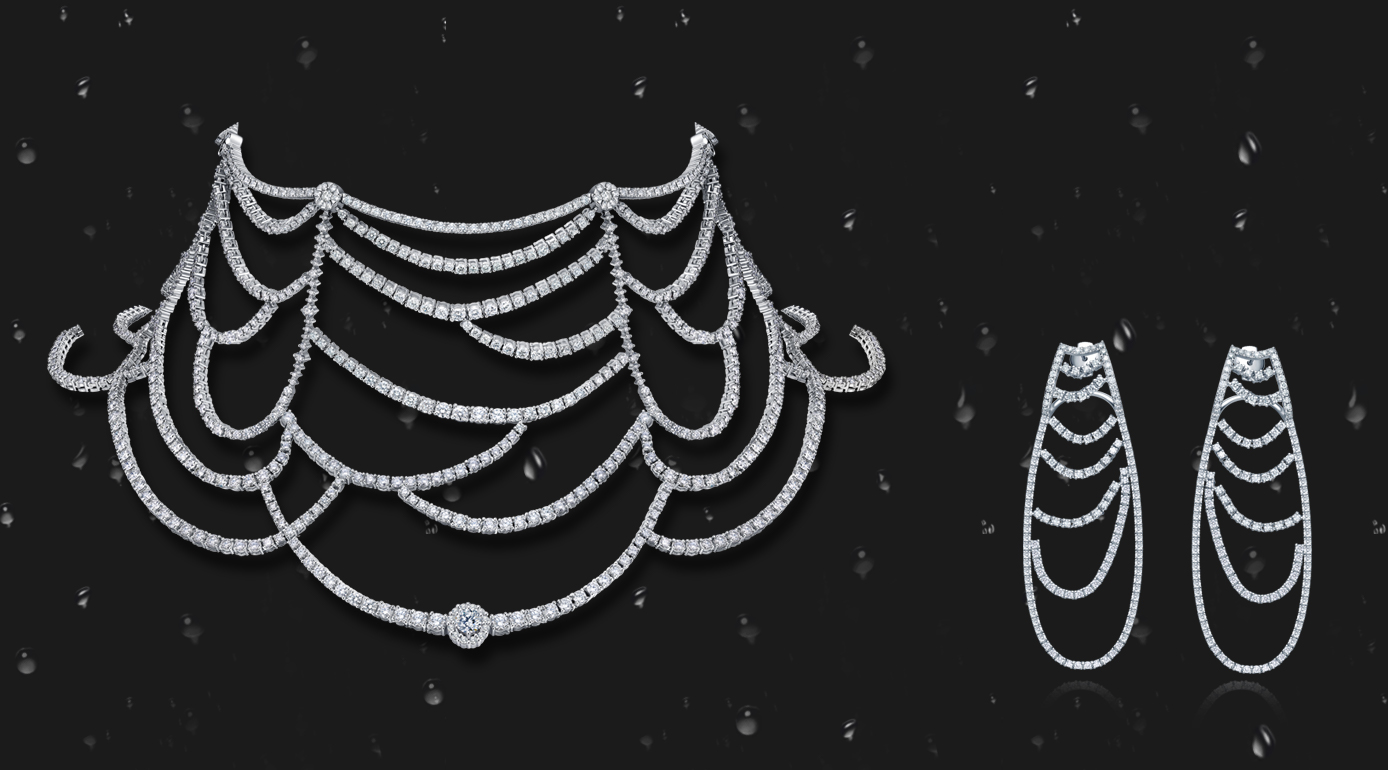 Cold autumn dew forming on chrysanthemum petals late in autumn. Cold Dew is a period of late autumn, which hints at winter’s chill. Cold Dew falls on early November. As the name implies, the morning dew becomes colder and colder, and grows thick as it condenses. This piece is inspired by these thick dewdrops of late autumn, falling into a web-like pattern. The embedded diamonds turn this piece into a stellar array of crystal dewdrops, adorning the neck of the wearer with the glamorous autumn and a layer of cool beauty. The droplets slide downward to form a chain, as if they were tears dripping from the face of a lover. In the words of the Song Dynasty poet Qin Guan, “If love between two hearts shall last forever, what need they cleave to one another each day and night?” It is a work of longing, of deep connection and strong love.