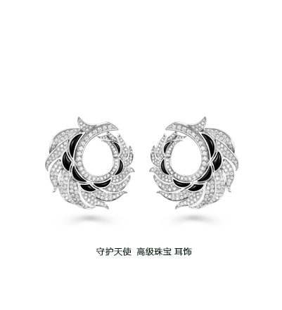 以東方白鸛的羽毛為設計靈感,黑瑪瑙和鉆石巧妙組合,呈現羽毛亮麗光澤,微鑲鉆石表現羽毛的豎向紋理,巧妙地突顯了作品設計的輕盈感,整件作品煥發著自然生命力,將羽翼的無限風華化為最溫柔的守護。